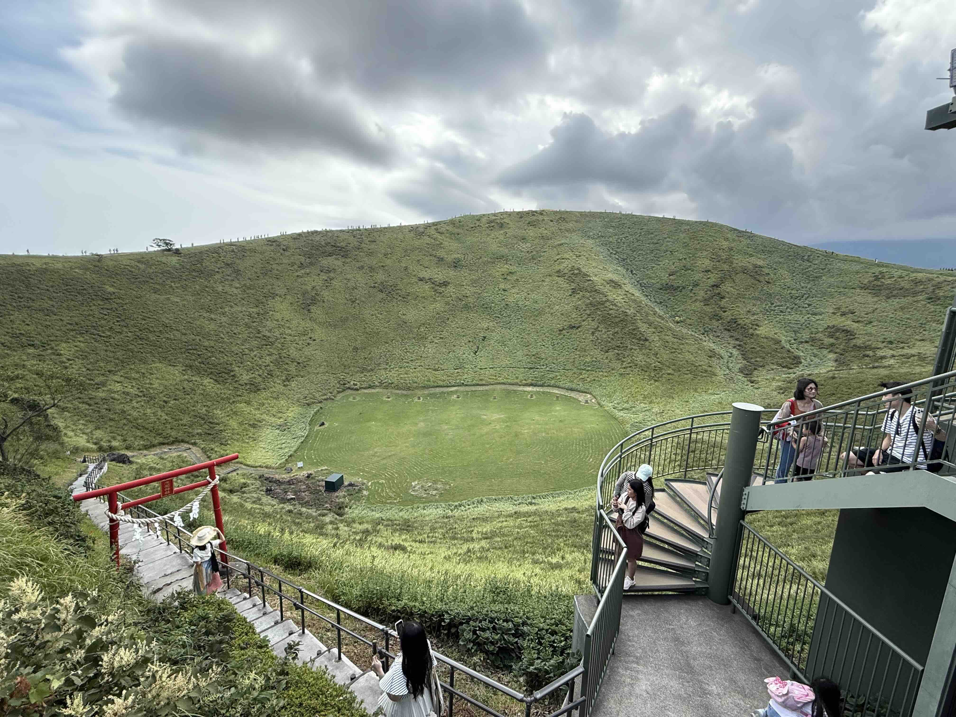 大室山山頂は,アニメ映画「君の名は。」の聖地候補とのことでした.山頂で記念撮影.
