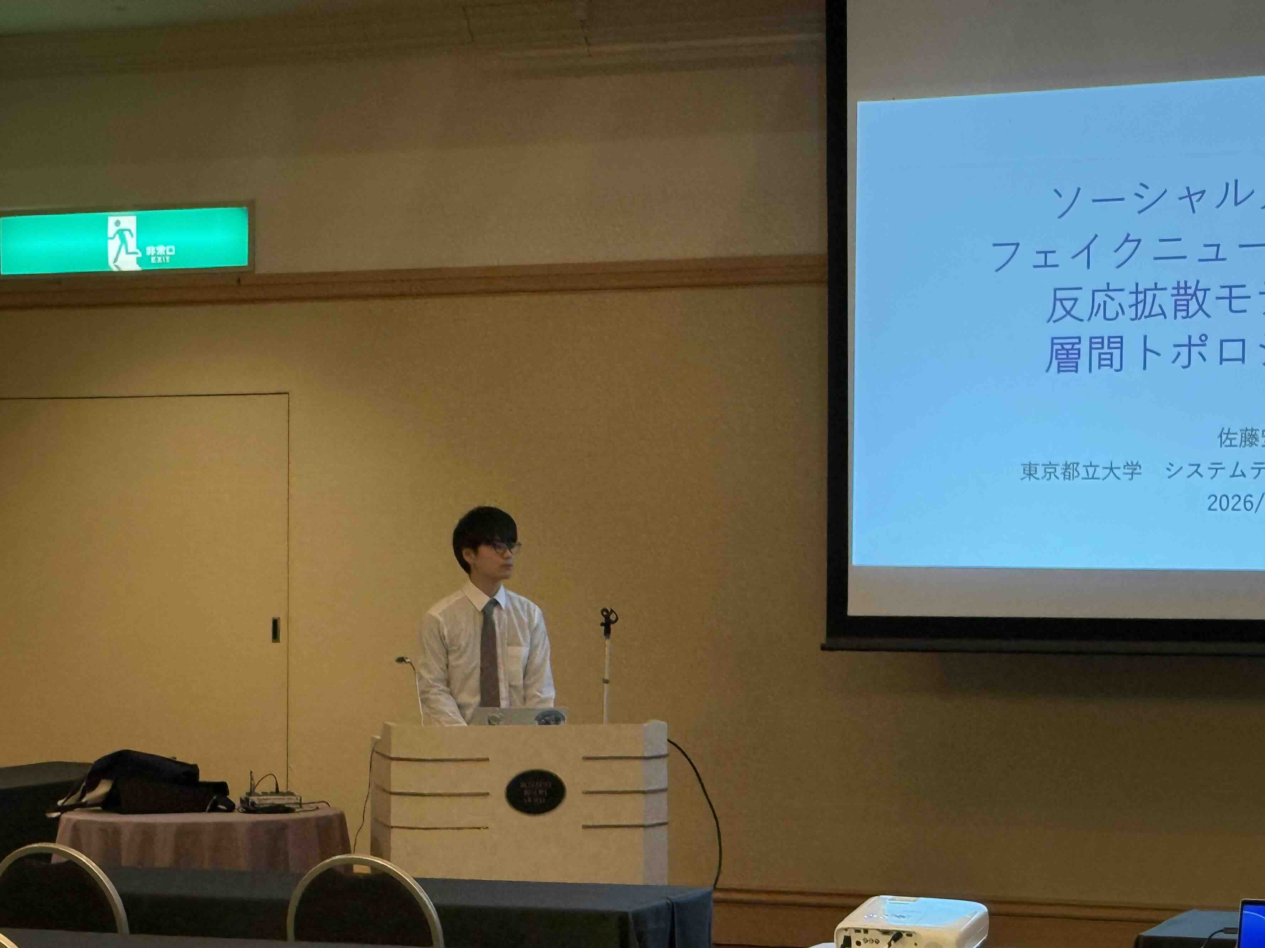 - 北海道・ルスツリゾートで行われた複雑コミュニケーションサイエンス研究会で,関さん,佐藤くん,真田さんが発表しました (2026.03.17-18)